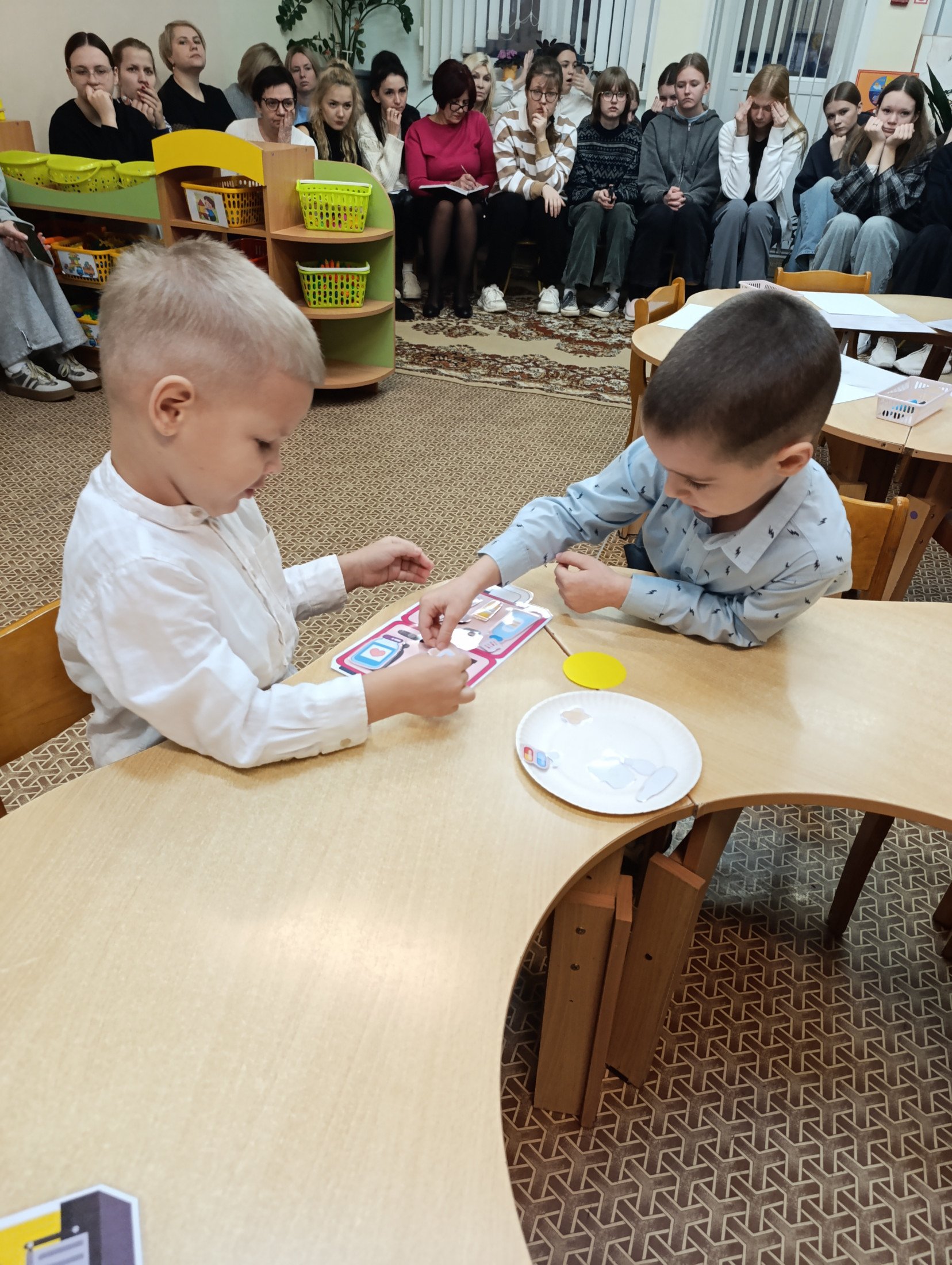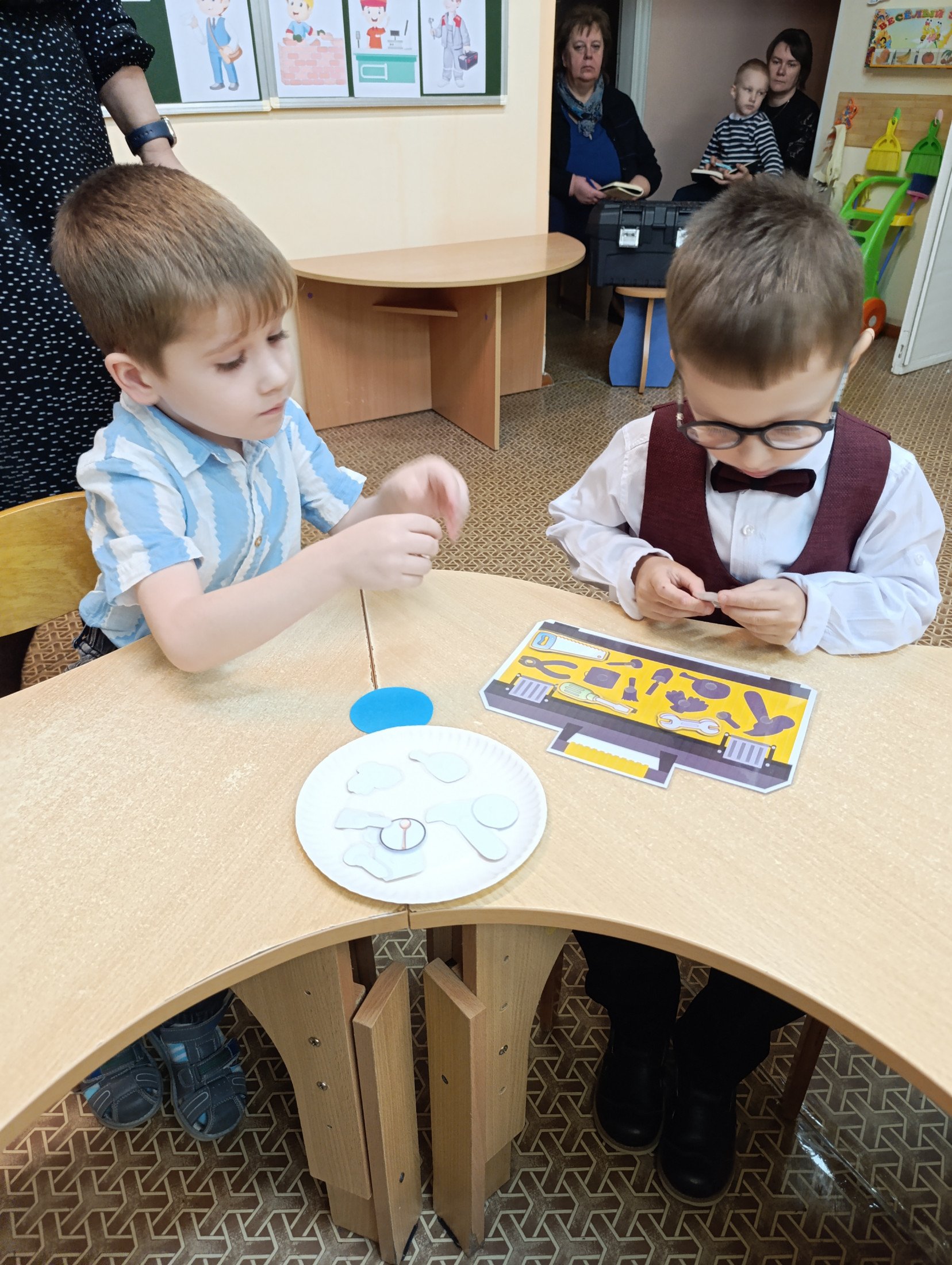 Умения выполнять простые трудовые действия с быстро достижимым результатом посредством игровых обучающих ситуаций формировала у своих маленьких воспитанников воспитатель дошкольного образования Зубкевич А.Е. Грамотное использование техники визуализации при ознакомлении с профессией повар продемонстрировала воспитатель дошкольного образования Петельская Е.В. Решение проблемных ситуаций быстро находили воспитанники воспитателя дошкольного образования Ковалевич А.А., попав в волшебный Город Профессий. Элементарные представления о профессиях людей, связанных с сельским хозяйством, посредством информационно-коммуникационных и игровых технологий получили ребята, с которыми работает воспитатель дошкольного образования Медведь О.М. Много интересной и познавательной информации о различных профессиях узнали мальчики и девочки, которые прошли квест-игру с музыкальным руководителем Керимовой В.А.