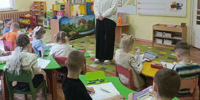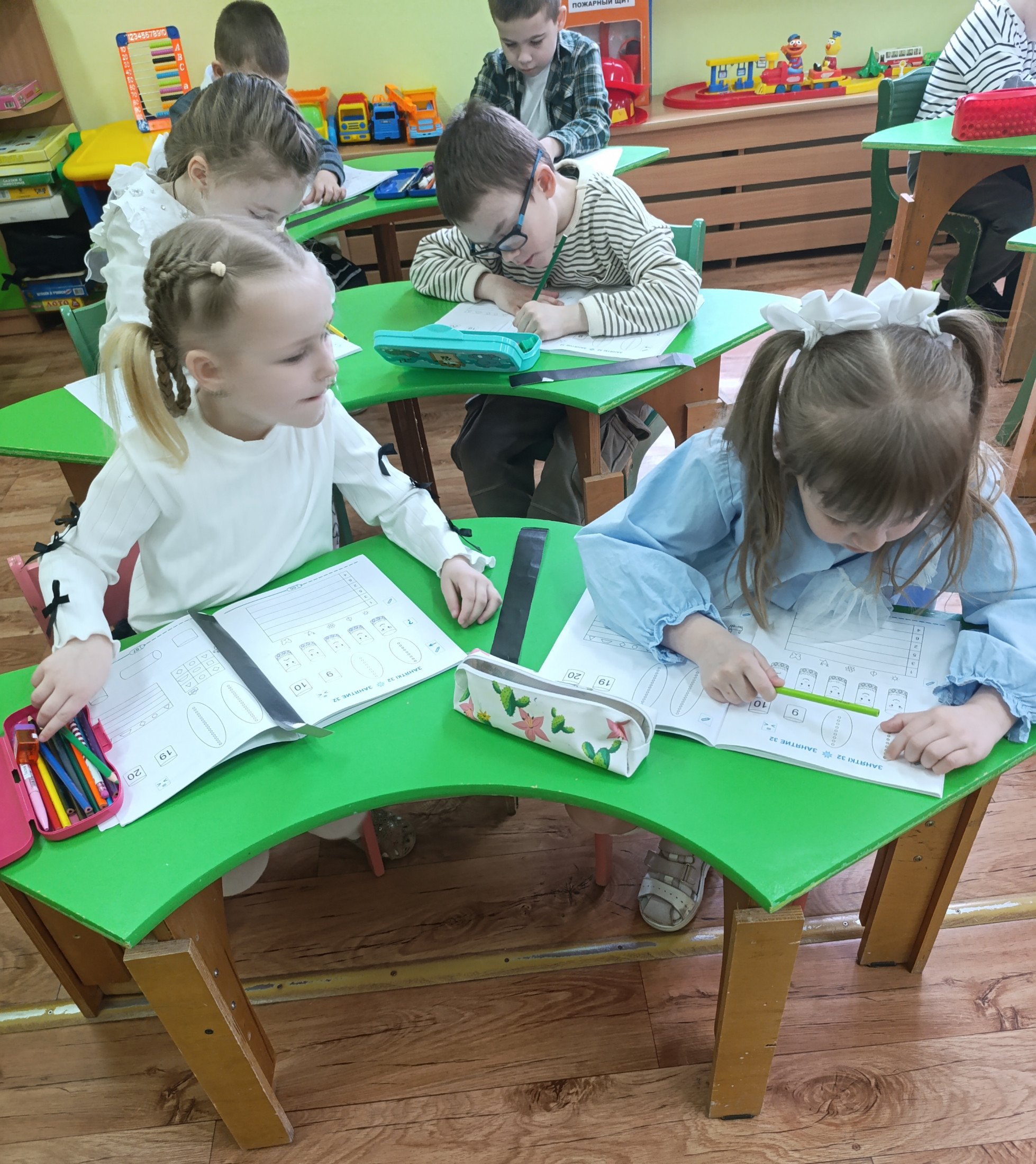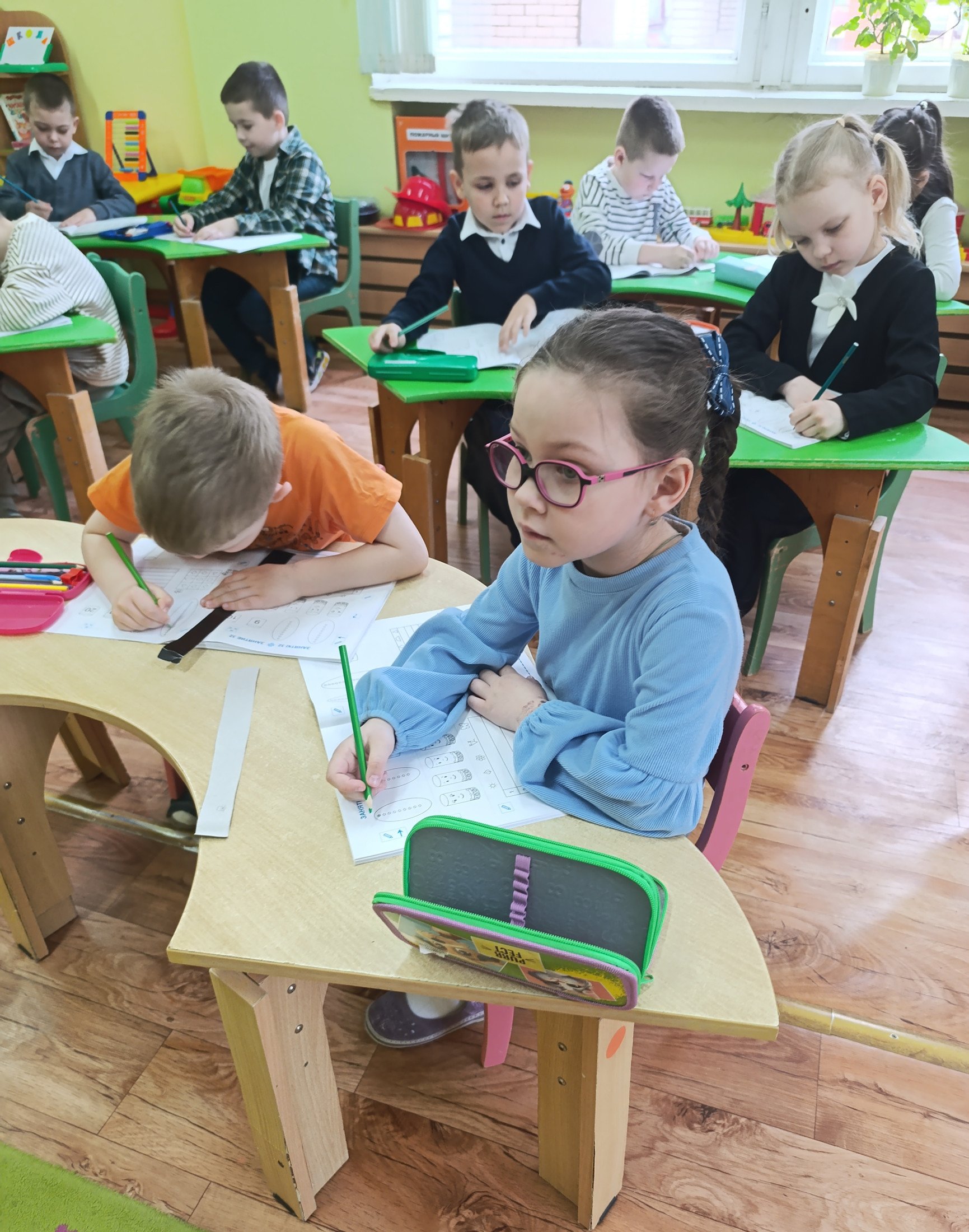 Занятие по образовательной области "Элементарные математические представления" было организовано для воспитанников старшей "Б" группы, в которой работает Данилович П.Д. Ребята вместе с Полиной Дмитриевной совершили путешествие в Страну Математики, где повстречали своих старых друзей Цифрика и Фигурку, познакомились с новыми героями Конусом и Цилиндром, выполнили все задания, которые "прятались" в волшебных конвертах и раскодировали важное слово для будущих первоклассников - "Школа".