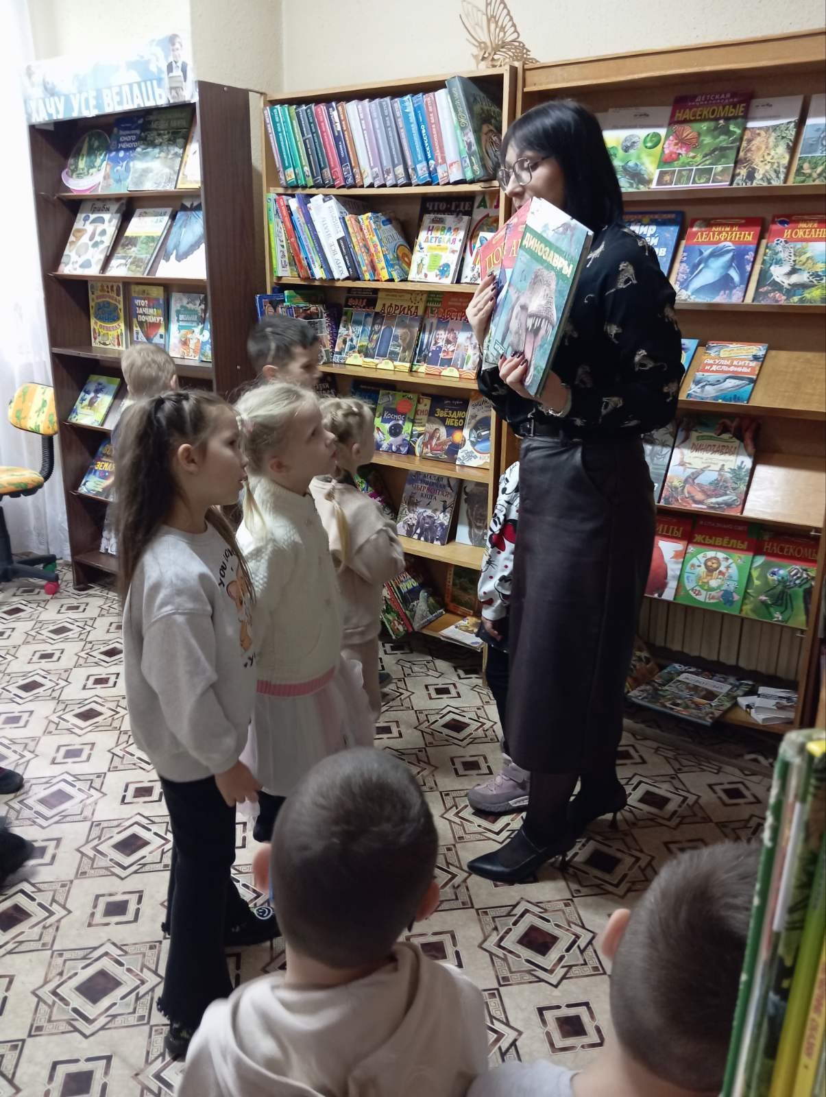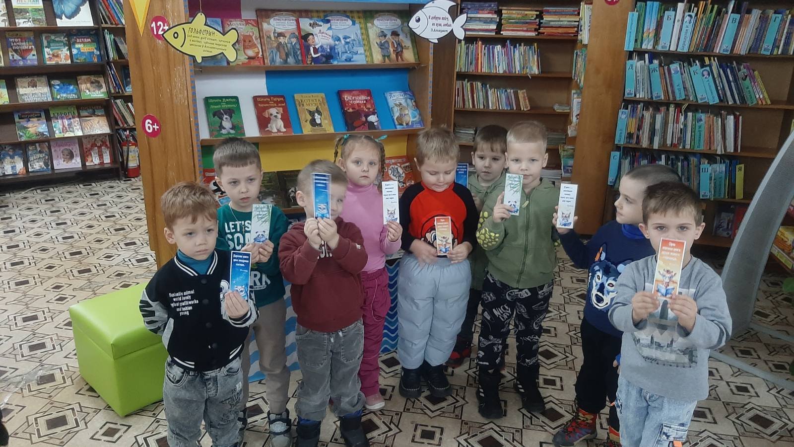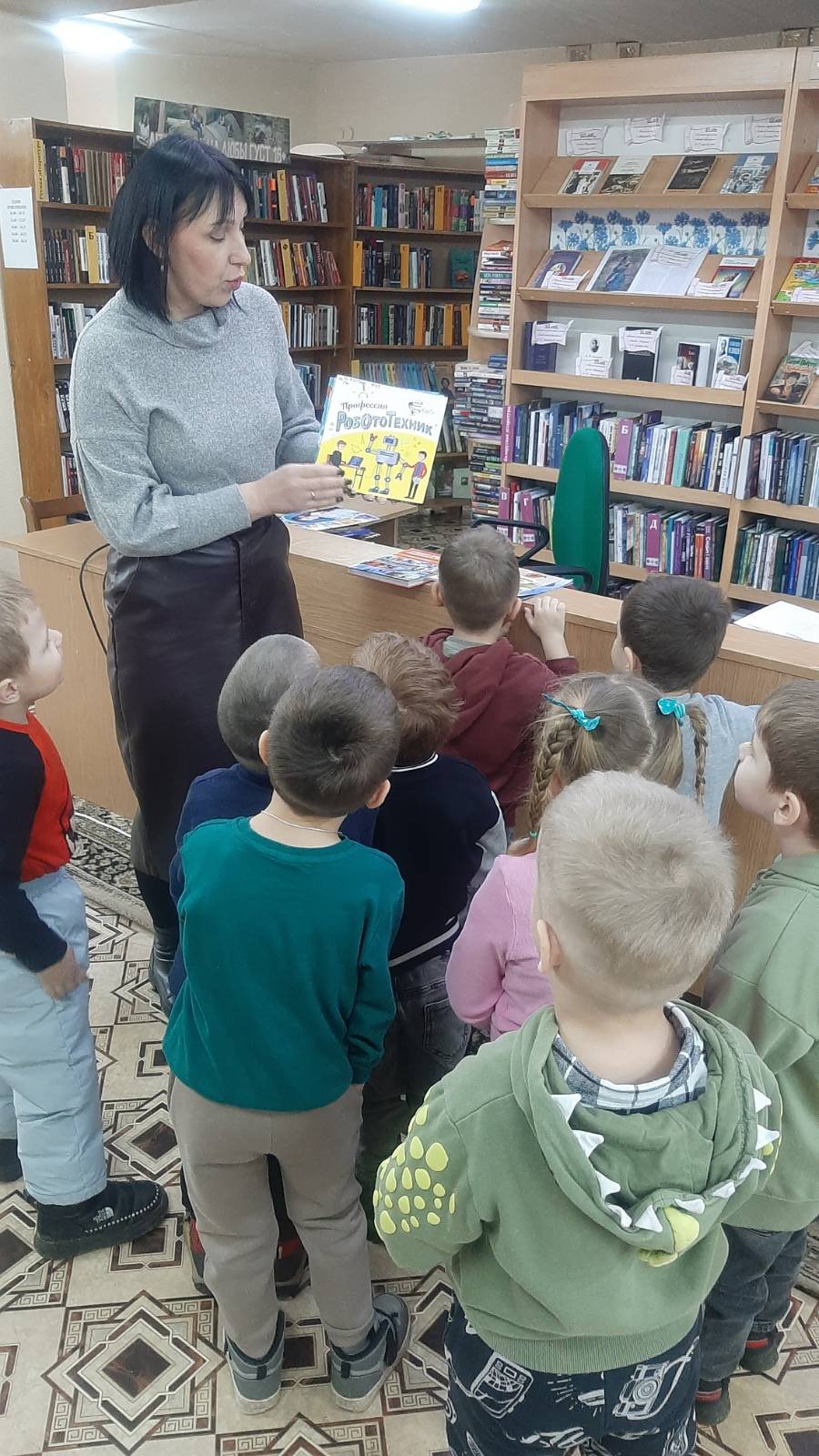 В этот раз, ребята из специальной группы для детей с ТНР (от 3 до 5 лет), старших "А", "Б" групп вместе со своими воспитателями дошкольного образования Игнатович Е.К., Колосовой С.Н., Медведь О.М. отправились к нашим старым знакомым в Городскую библиотеку, филиал № 46 и узнали много нового. А новое - это то, что мальчики и девочки познакомились с профессией людей, которые там работают- библиотекарь, одна из них - библиотекарь Наталья Леонидовна показала своё рабочее место и рассказала о своём труде.