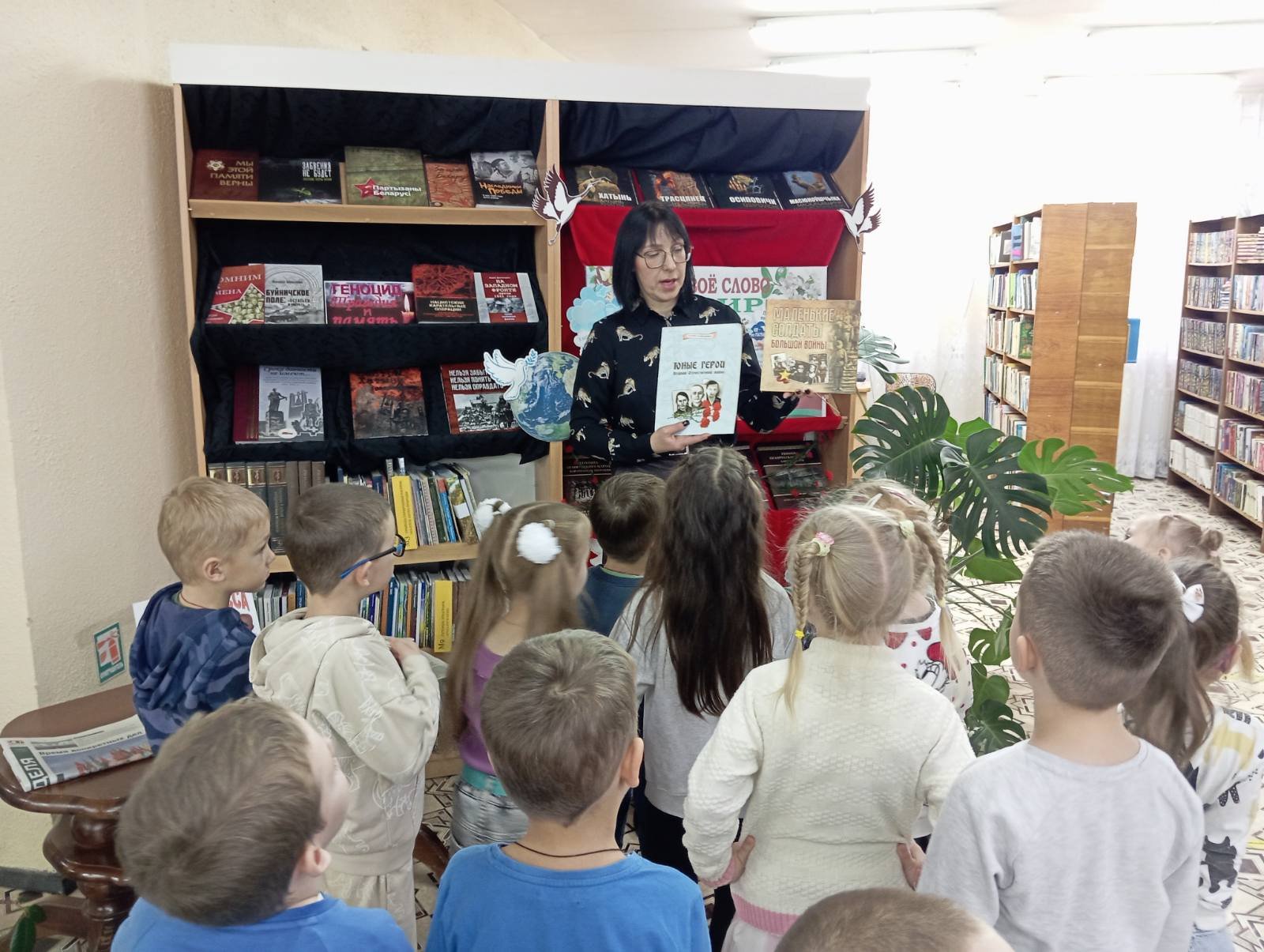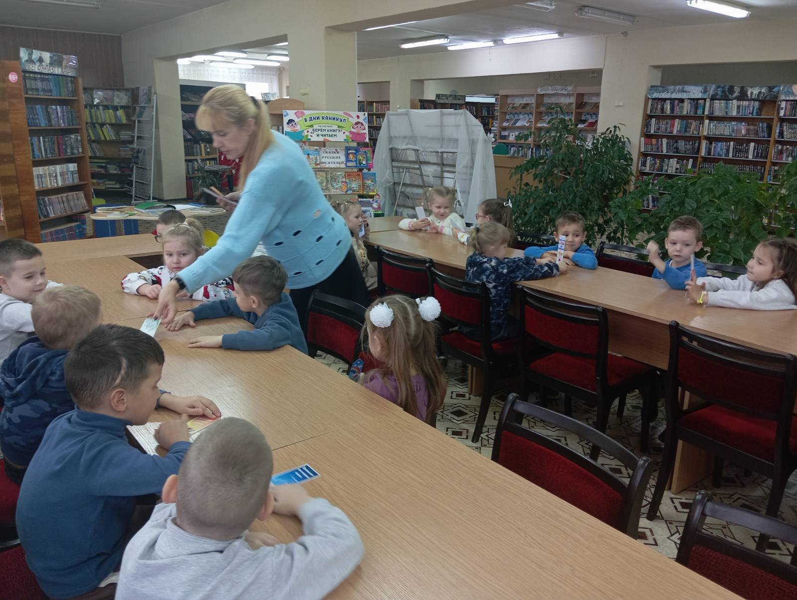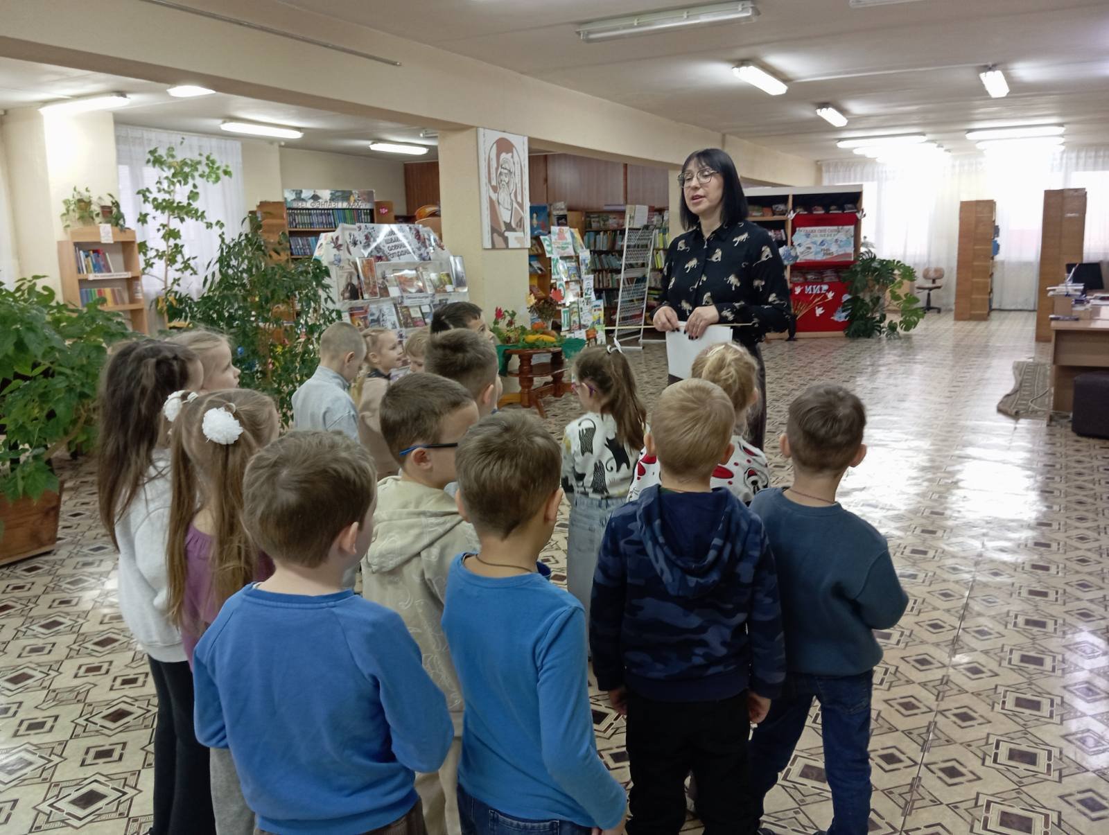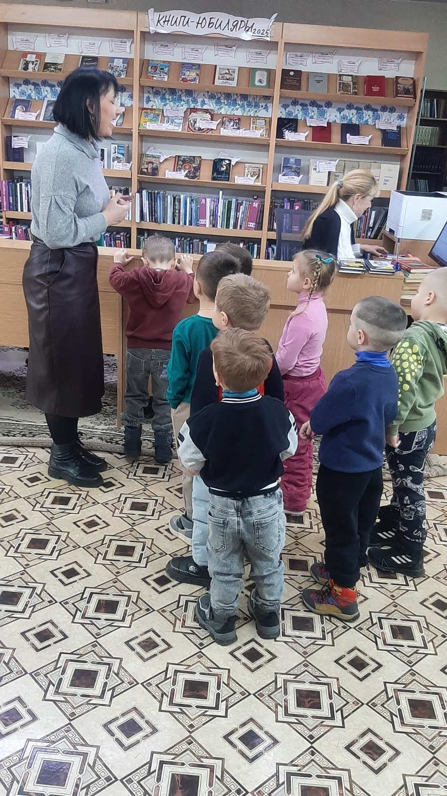 В этот раз, ребята из специальной группы для детей с ТНР (от 3 до 5 лет), старших "А", "Б" групп вместе со своими воспитателями дошкольного образования Игнатович Е.К., Колосовой С.Н., Медведь О.М. отправились к нашим старым знакомым в Городскую библиотеку, филиал № 46 и узнали много нового. А новое - это то, что мальчики и девочки познакомились с профессией людей, которые там работают- библиотекарь, одна из них - библиотекарь Наталья Леонидовна показала своё рабочее место и рассказала о своём труде.
