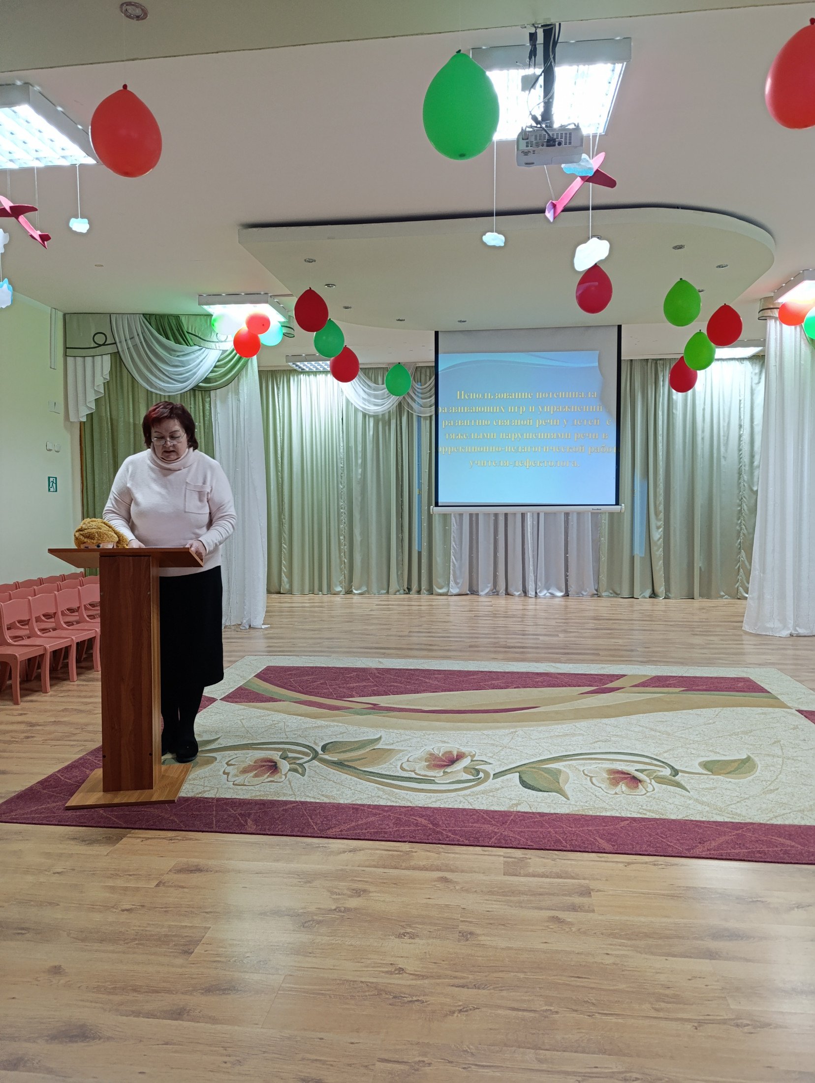 Далее выступили сотрудники ДЦРР, которые поделились эффективным педагогическим опытом. Воспитатель дошкольного образования Ладыгина Т.В. рассказала об организации работы по поддержке и стимулированию проявлений речевой активности детей раннего возраста посредством обучающих игр и упражнений. Воспитатель дошкольного образования Воробьёва Л.А. раскрыла потенциал использования обучающих игр и упражнений по развитию связной речи и формированию коммуникативных навыков в нерегламентированной деятельности. Учитель-дефектолог Евхута И.Э. ознакомила присутствующих с содержанием коррекционно-педагогической работы с воспитанниками с тяжёлыми нарушениями речи. Творческий отчёт по использованию игр-презентаций в развитии речи детей провела воспитатель дошкольного образования Жабицкая В.В.